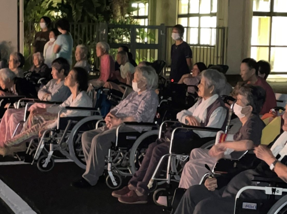 令和3年9月8日、施設の駐車場でちょっとした花火大会を行いました。夏祭りも2年連続で中止となってしまったので、