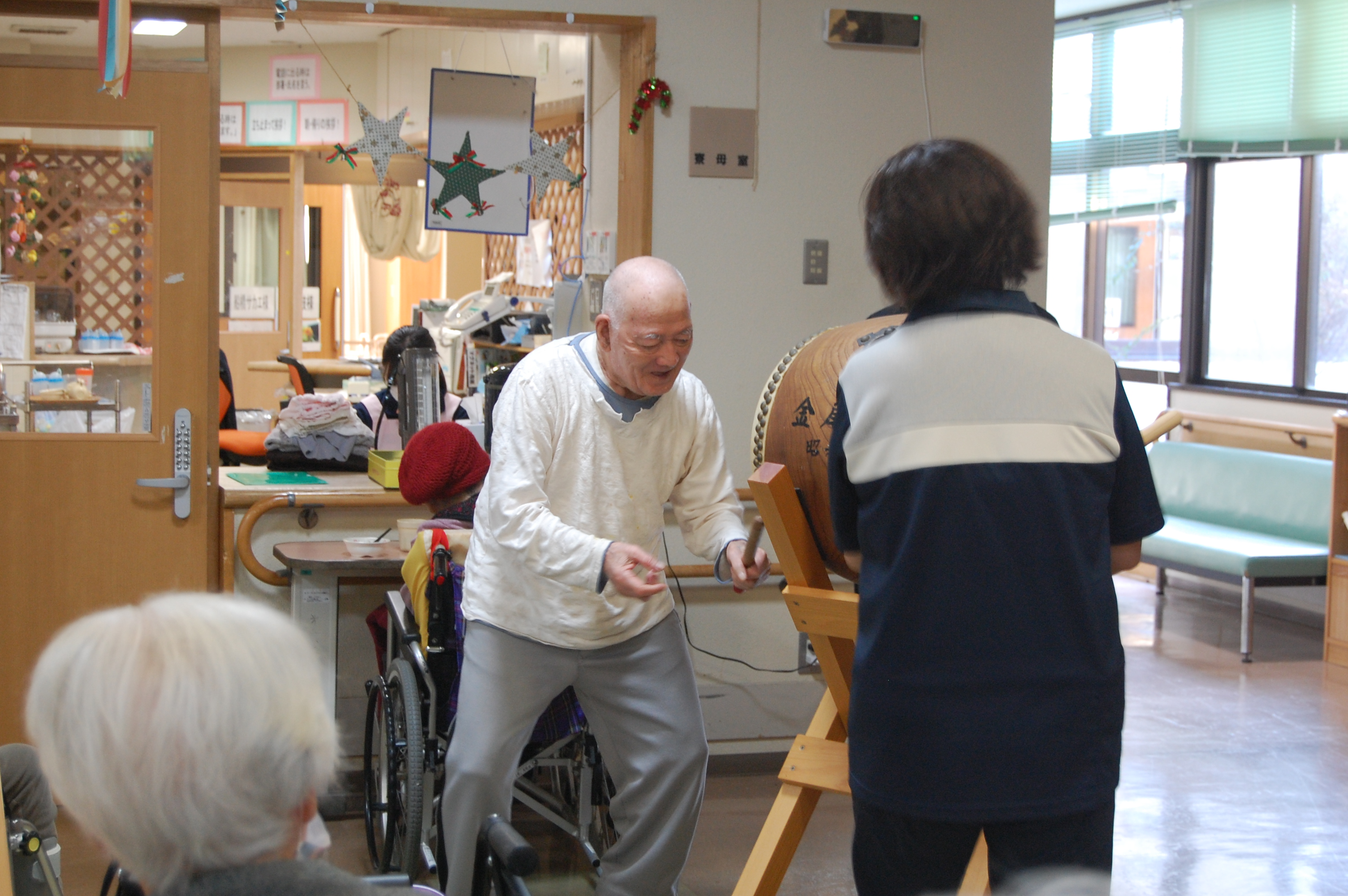 職員と一緒に八丈太鼓、歌を披露して頂きました♪