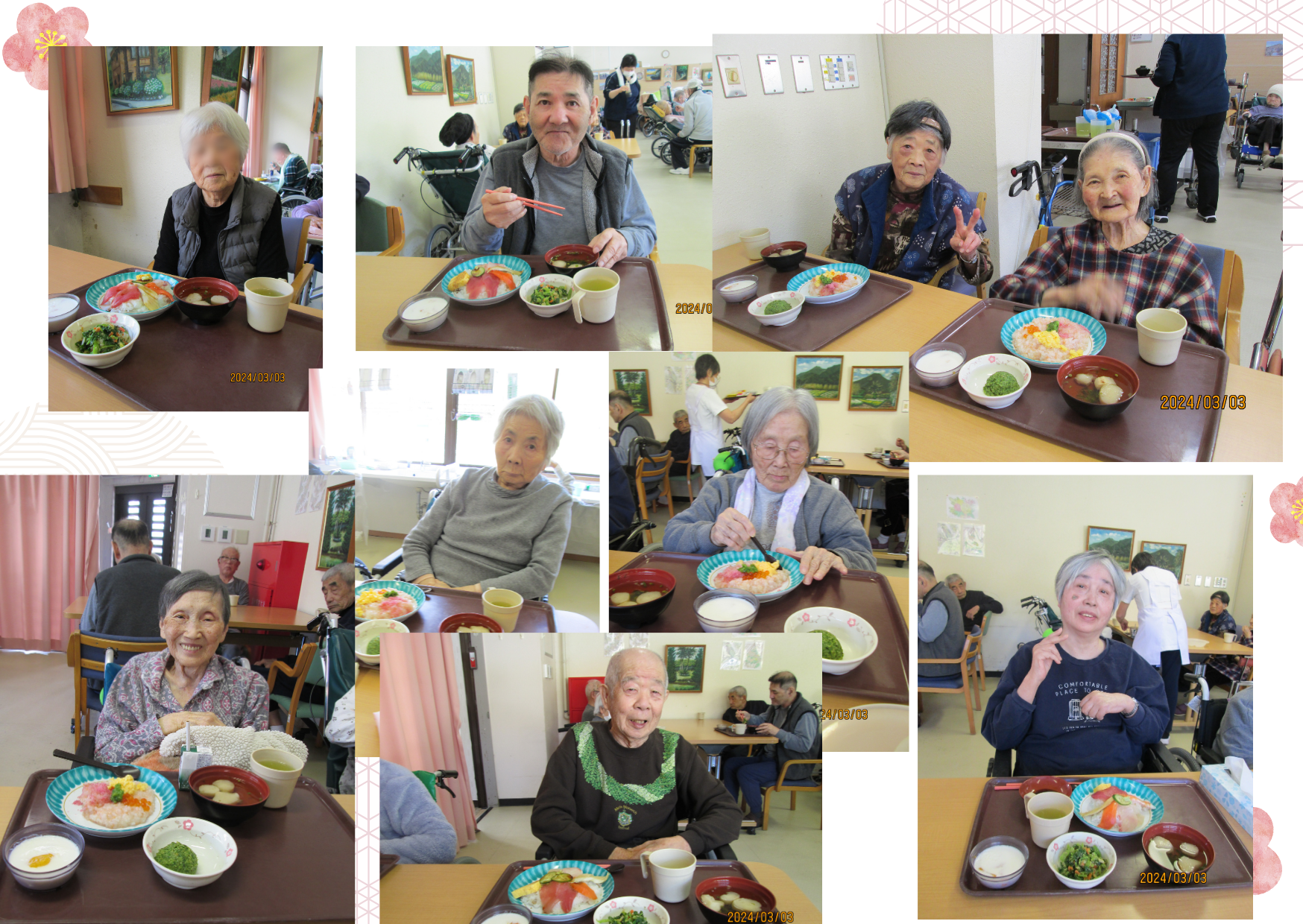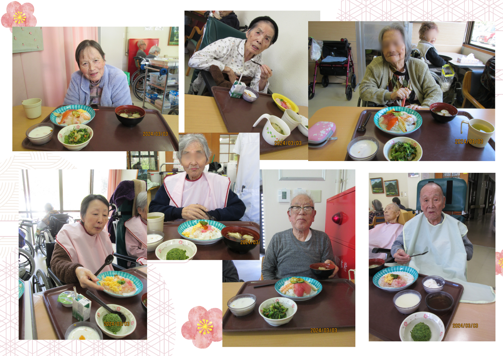 3月3日はひな祭りということで、お食事にちらし寿司を提供させて頂きました♪