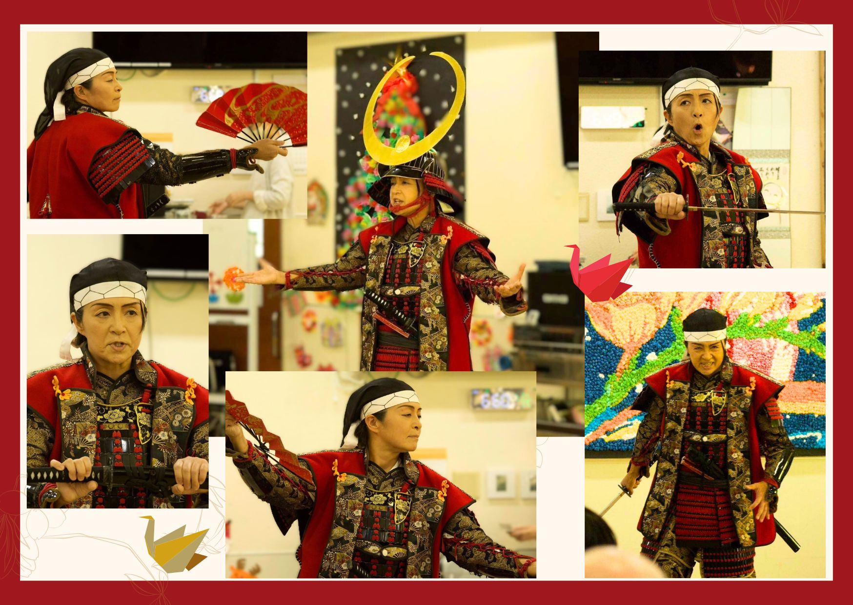 迫力のある甲冑姿でお芝居や日舞を披露して頂き、利用者の皆さまも、職員も、とても引き込まれました。